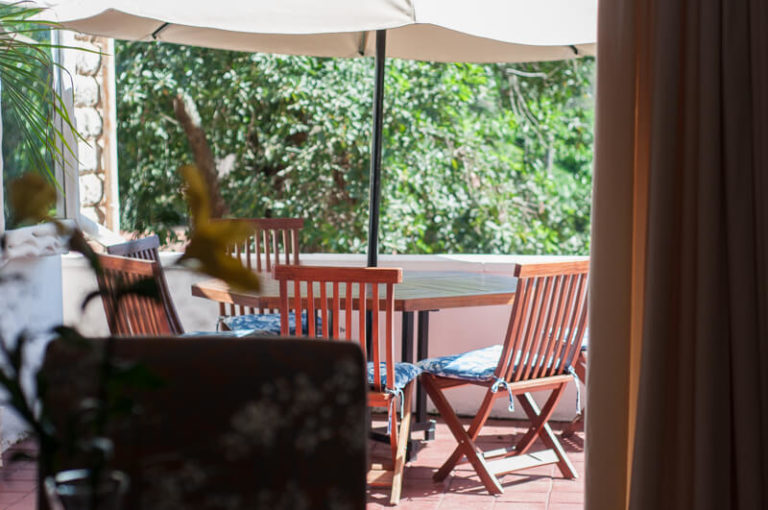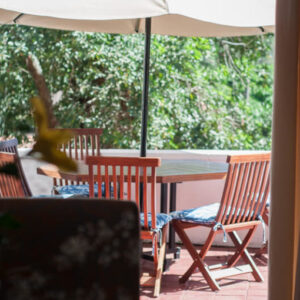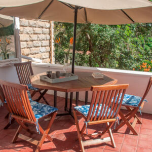 Spacious terrace with outdoor dining setup (six-seater table & umbrella)