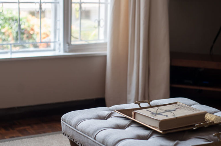 Bright living room with large garden-facing windows