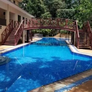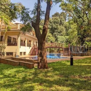 The recreational facilities are only comparable to a five-star hotel with an open air swimming pool surrounded by well-manicured lawns and mature trees and partly covered by a large sturdily constructed timber bridge that takes you to the club house that is furnished with timeless couches, a fireplace and an outdoor terrace overlooking the swimming pool. A well-equipped gym is on the next level above the club house.