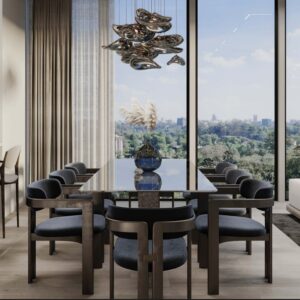 Located along Muthangari Drive, Westlands, this exquisite development sits near the crossroads of major infrastructure arteries such as James Gichuru Road, Waiyaki Way, Westlands Redhill Link Road, and the newly constructed Nairobi Expressway. It soars high in the sky like a shining jewel enveloped by a sea of lush green trees, a masterfully designed collection of upmarket luxury apartments in the heart of Nairobi. With floor-to-ceiling windows, it offers a breathtaking view within the thriving hub of Westlands, Nairobi. It is certainly an address with an international appeal.